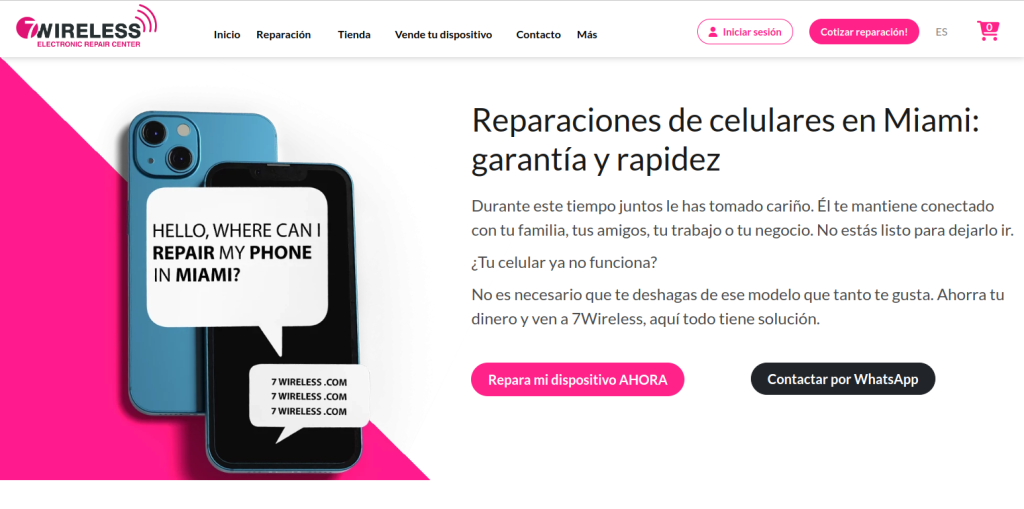 Taller de reparación de celulares y tienda de equipos y accesorios en Miami.